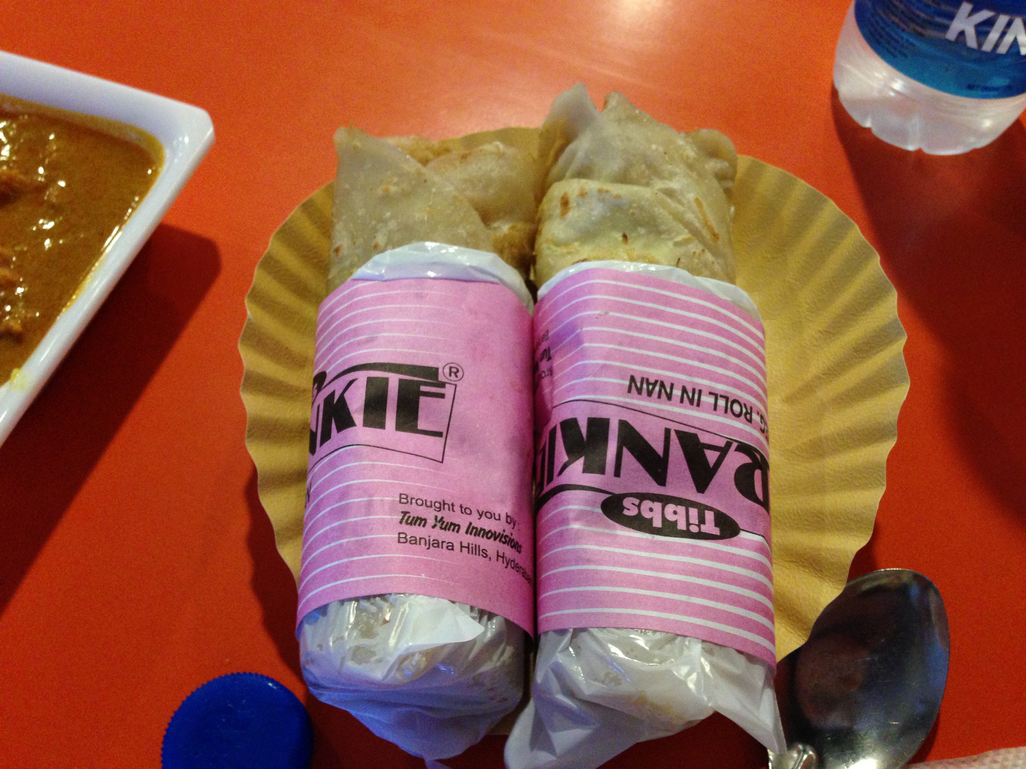 It’s basically a giant Indian burrito, using roti as the wrap and either tiki masala or some other curry inside. You can also add cheese inside.