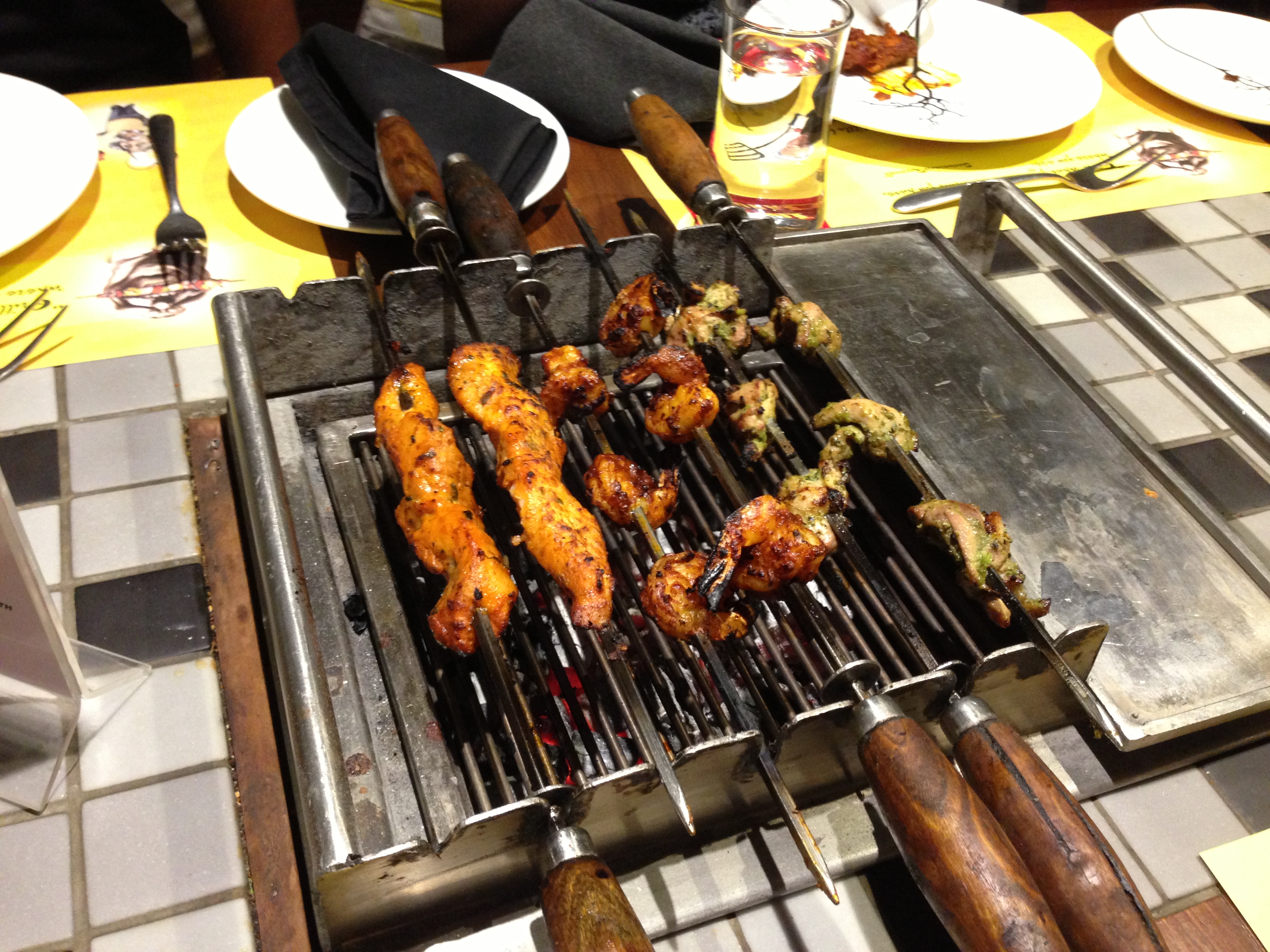 Slow roasted DIY BBQ, similar to Korean BBQ. However, everything is on a skewer.