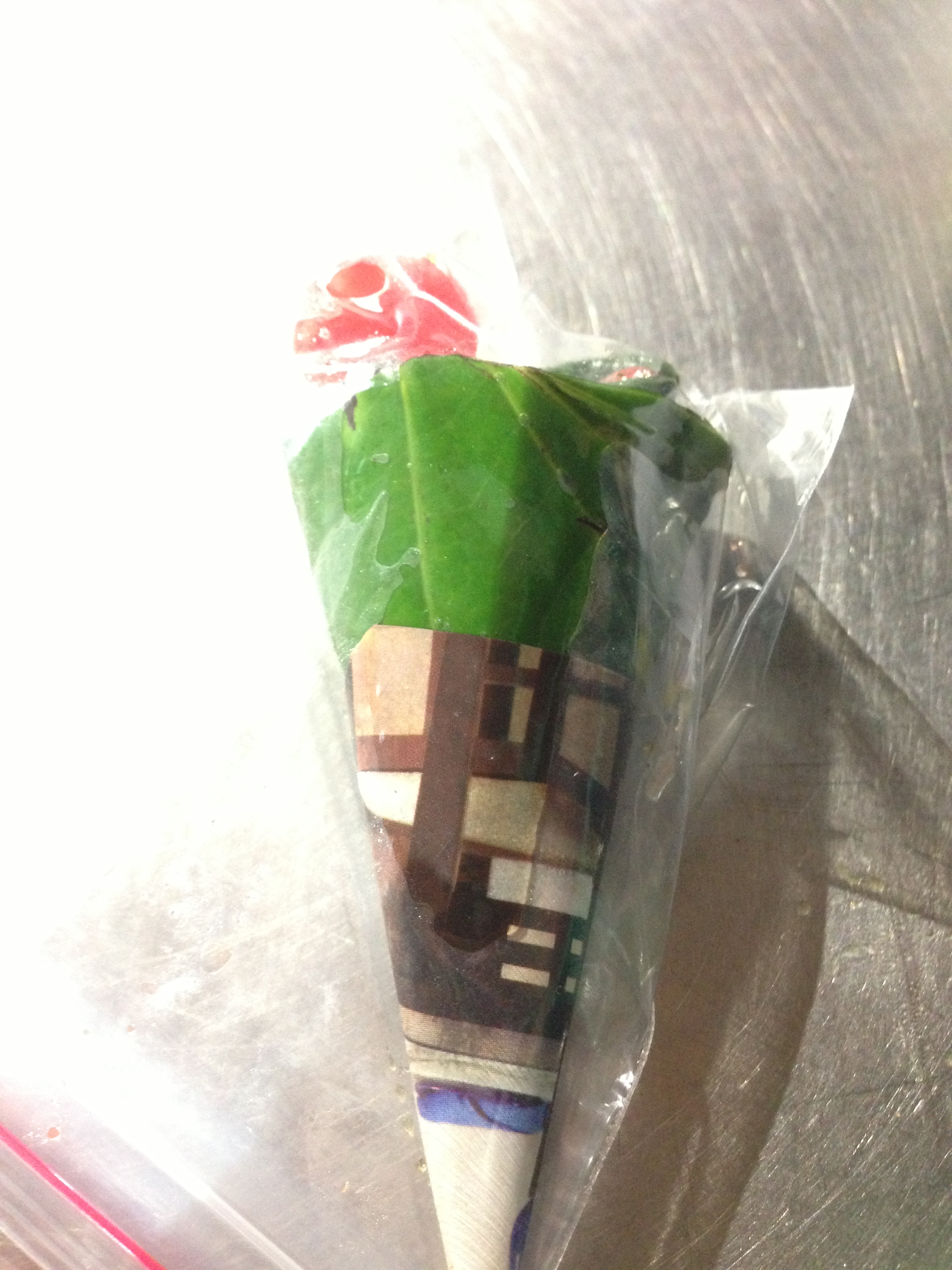 Usually eaten after a meal as a digestive, made out of beetlenut leaves and other spices. The top has a thin layer of edible silver.