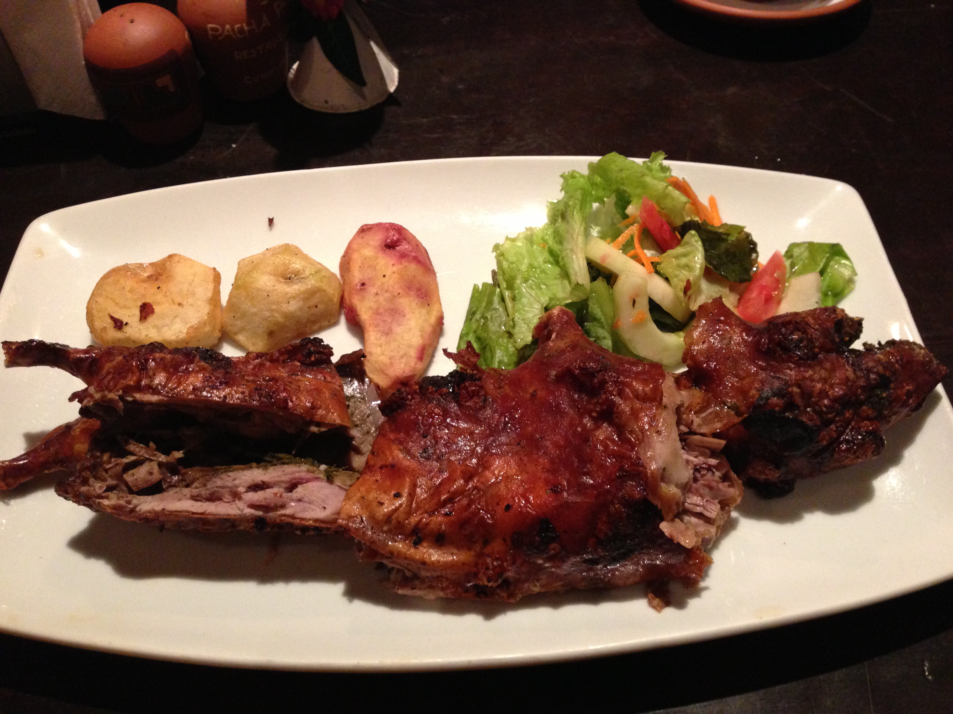 For the more adventurous eaters, definitely try Guinea Pig or Cuy. The restaurant we visited in Cusco, Pachapapa, cooks whole guinea pig, but there are plenty of places that just serve it steak style. It’s actually quite delicious, as it is typically grilled or baked with a crispy skin. The meat tastes like chicken (like all mysterious meats) and a bit like rabbit and is actually quite good.